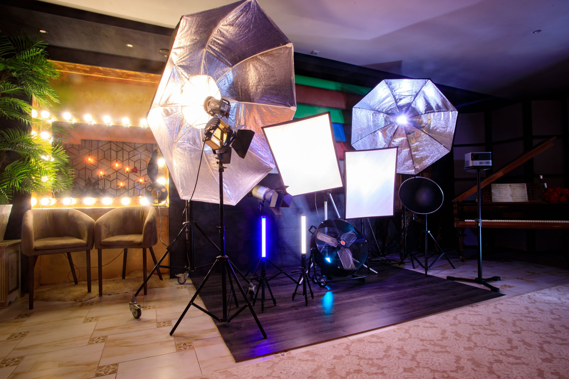 Добро пожаловать в фотостудию, где каждая ваша фото- и видеосъемка станет настоящим произведением искусства! Здесь мы предлагаем более 10 источников импульсного освещения, которые превратят вашу съемку в великолепное шоу света и тени. Вы сможете выбрать разнообразные источники света, чтобы воплотить в жизнь любые задумки и фантазии. Кроме того, фотостудия оборудована более чем 3 источниками постоянного освещения, 2 RGB палками и цветными фильтрами, которые позволят вам создавать уникальные эффекты и играть с тенями и светом. Это даст вам свободу для творчества и воплощения самых смелых идей. Насладитесь работой большого студийного вентилятора, который добавит динамики вашим работам, или возьмите в аренду генератор дыма, чтобы придать вашим снимкам особую атмосферу и загадочность. В нашей фотостудии каждый момент превратится в магию!